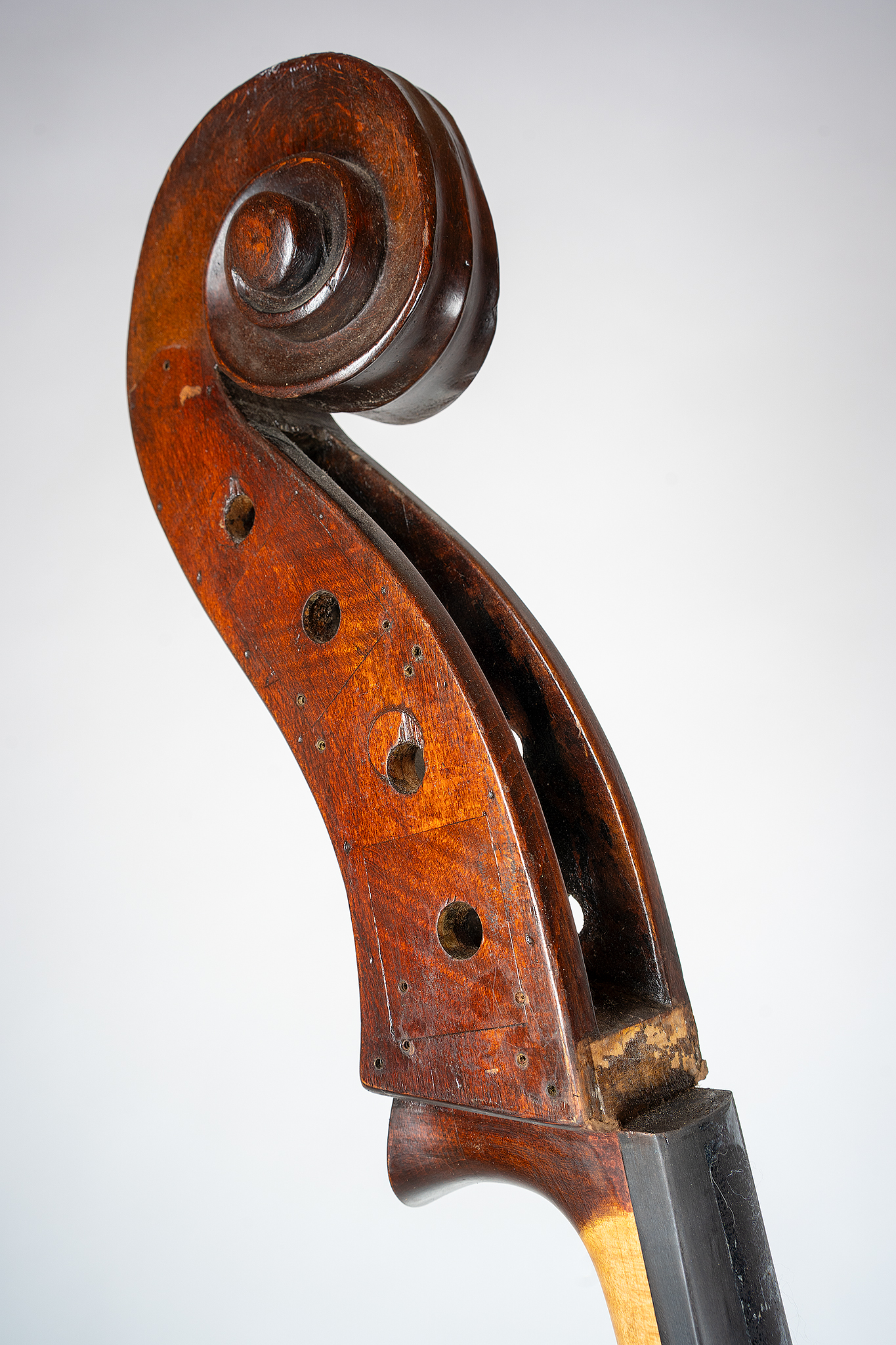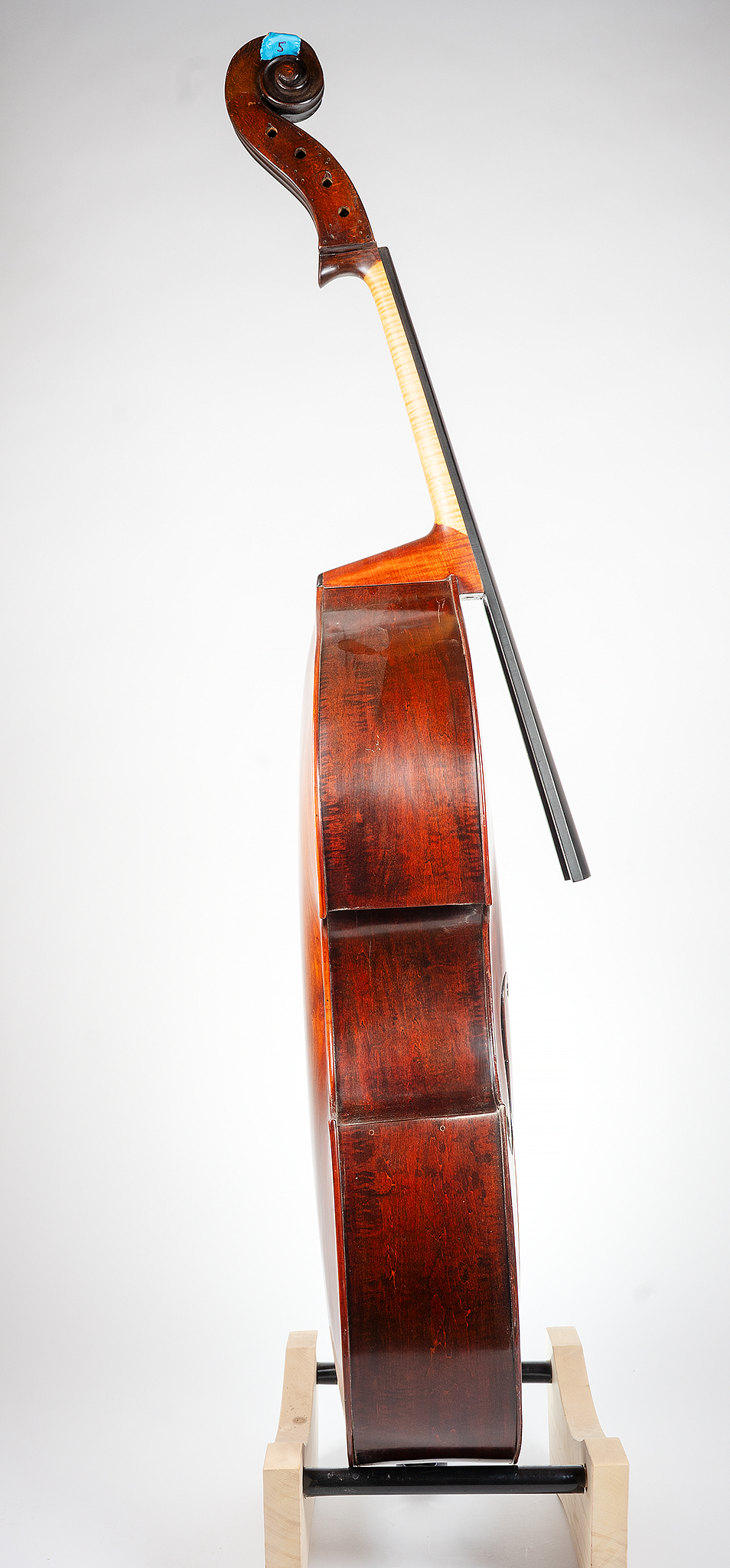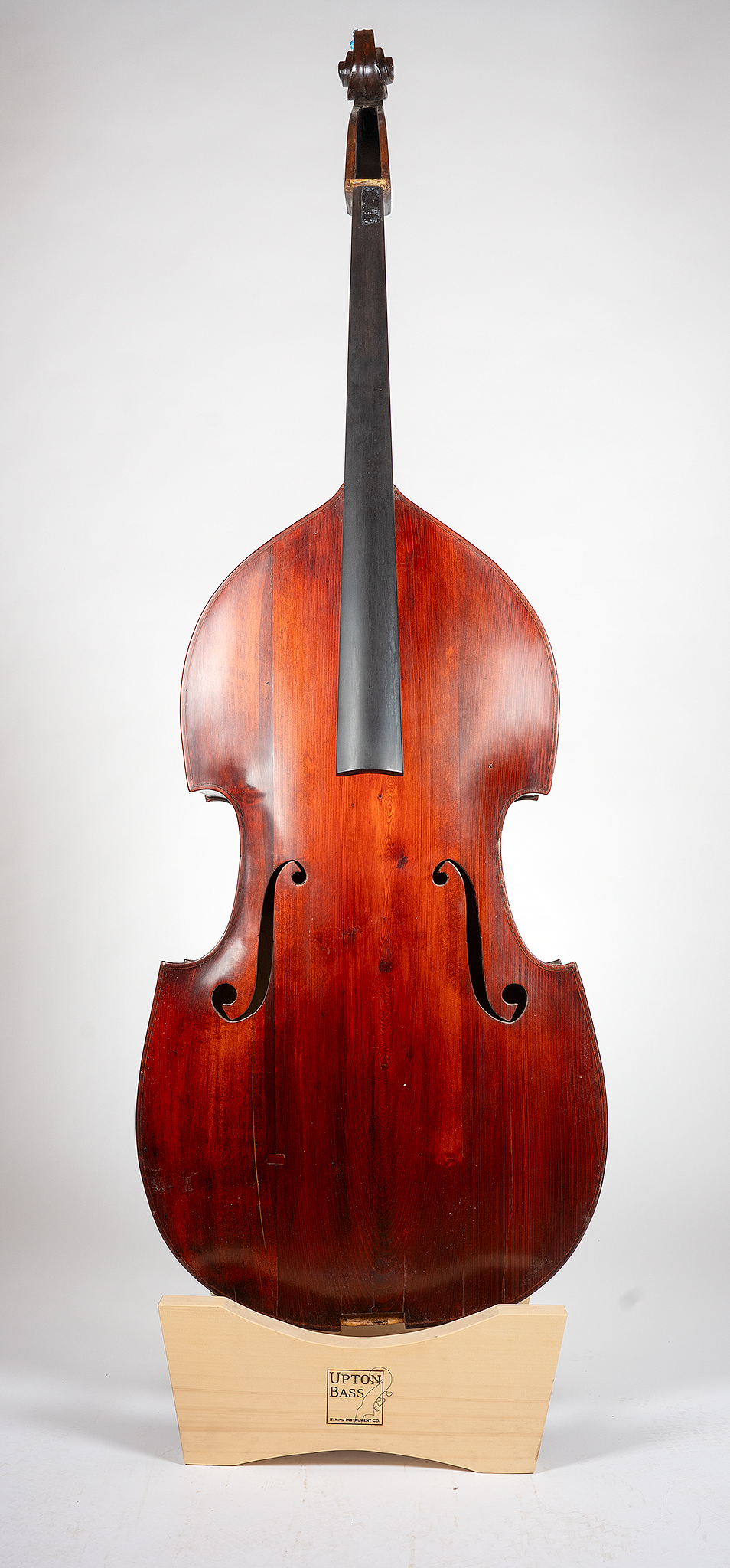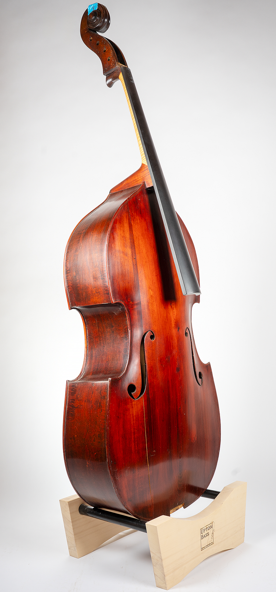 This bass reflects the character of many authentic Ventapanes characteristics, possibly incorporating Italian tonewood, but with replaced ribs and possibly back. It will undergo a re-restoration to Upton standards prior to sale. The scroll has been grafted, and the instrument shows signs of a long history of work, including a significant restoration by Lou DiLeone. While not a pure pedigree, it’s a solid player’s bass with lots of character. Once restored, it will be sold for 18,500.