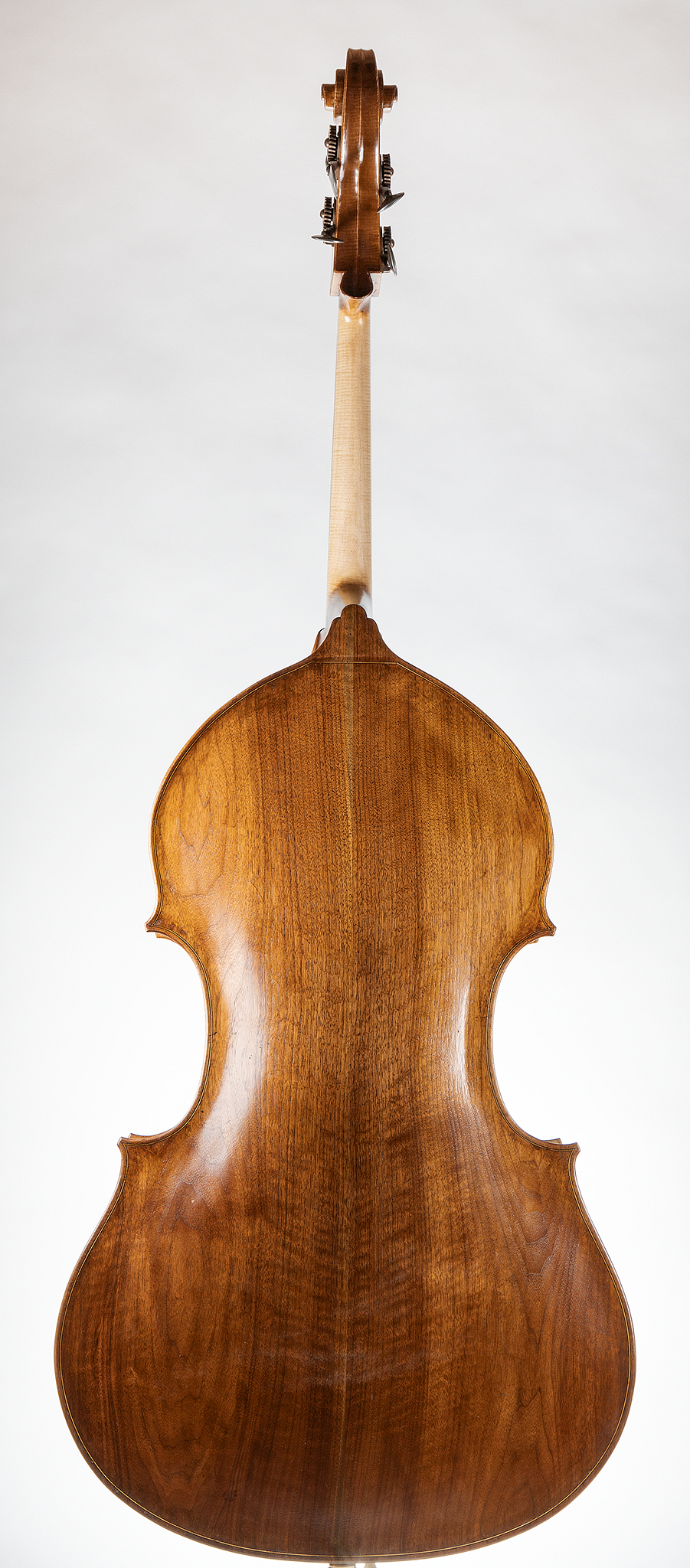 Professional 5/8 double bass by Arnold Schnitzer, built in 2022. Crafted with Pennsylvania walnut back, claro sides, and spruce top. A compact body and comfortable 40″ string length paired with master-level details and rich, even tone—high-end craftsmanship in a smaller, highly playable bass.